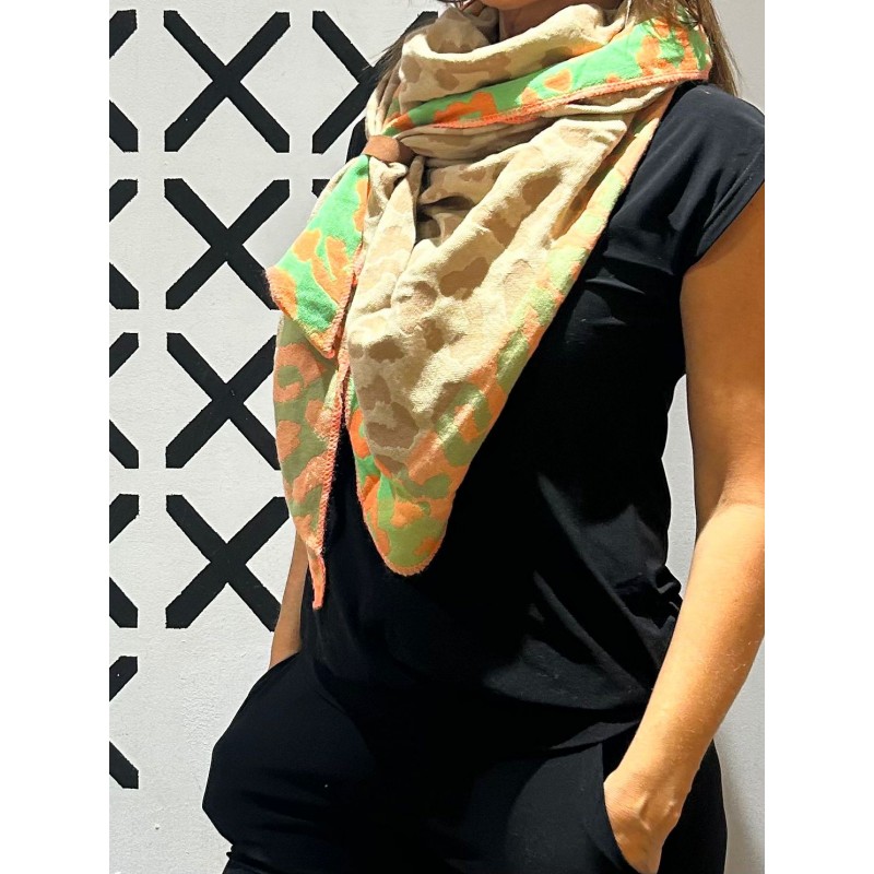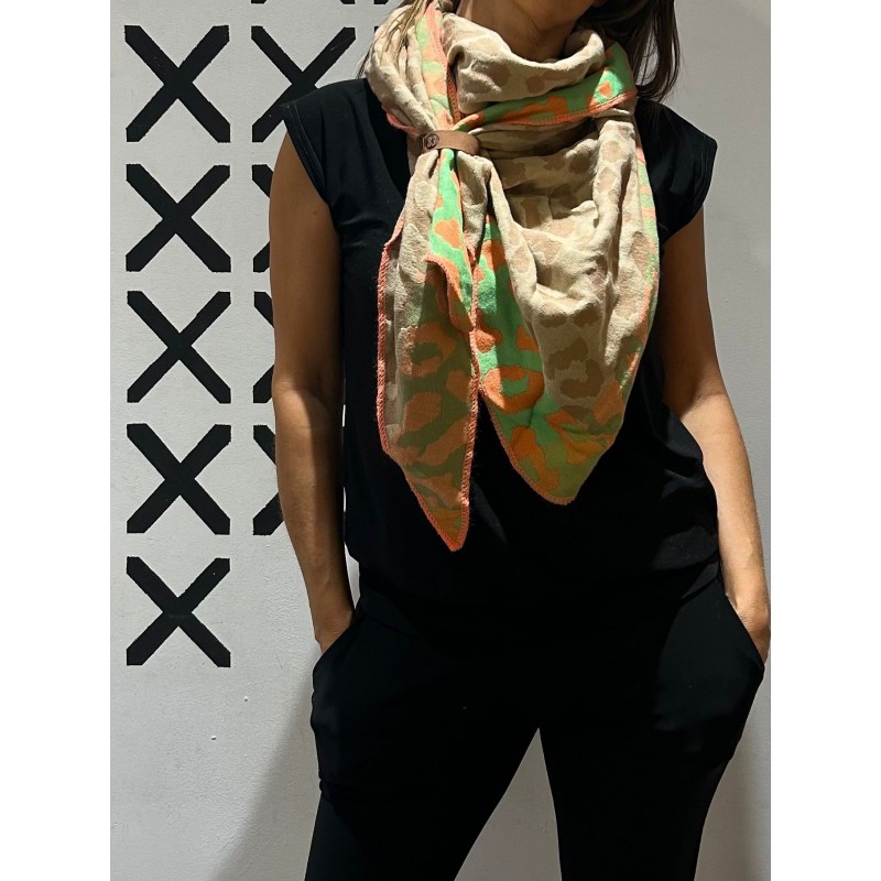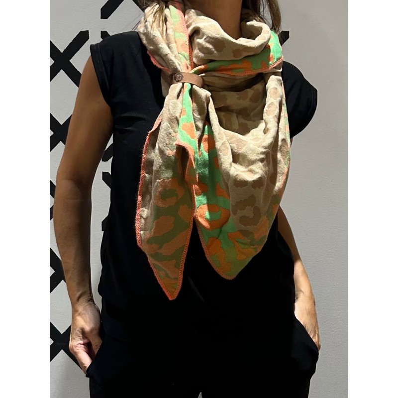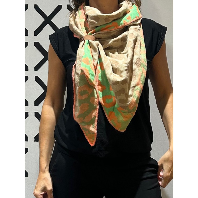 Cuello pañuelo fino estampado pantera en diferentes tonos.