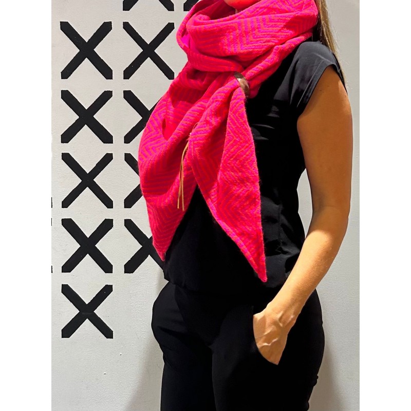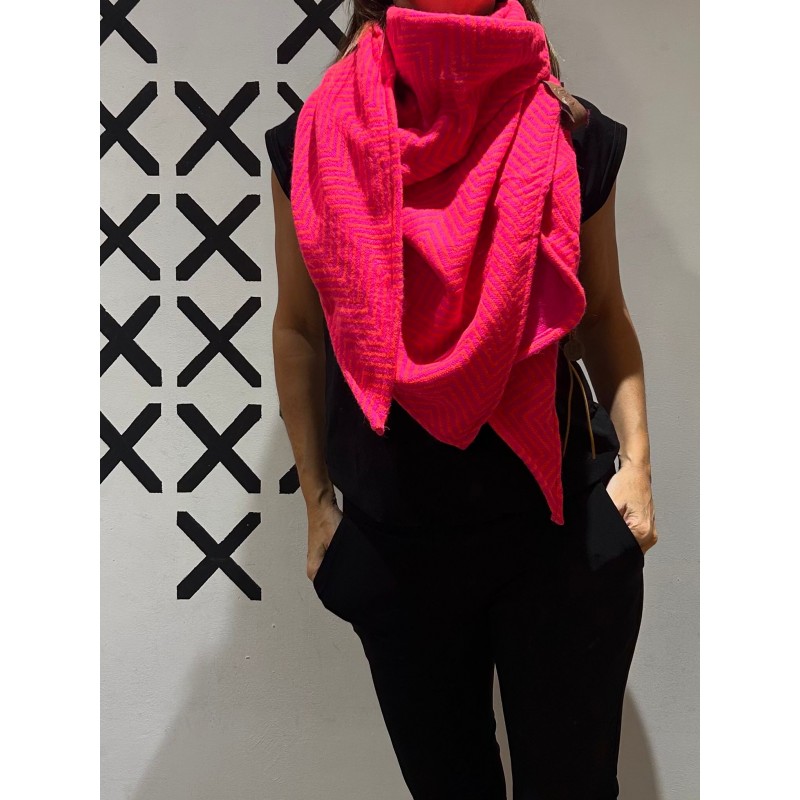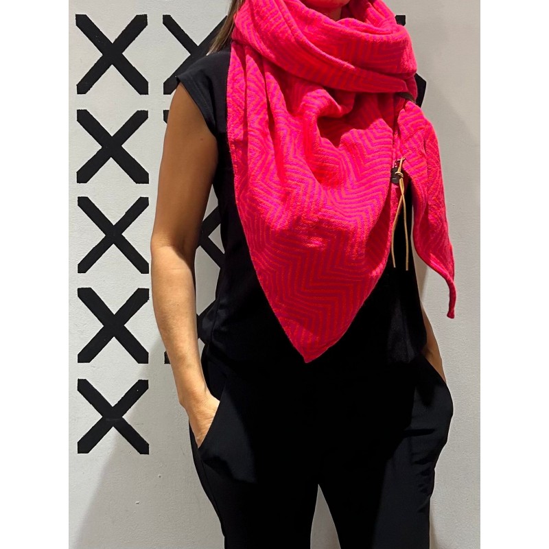 Muy bonito en color fucsia fluor. Estampado en espiga.