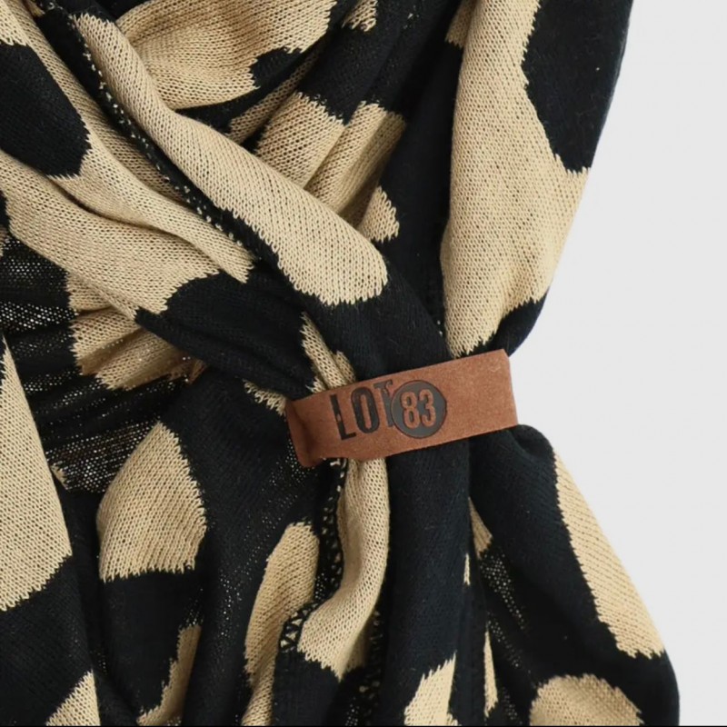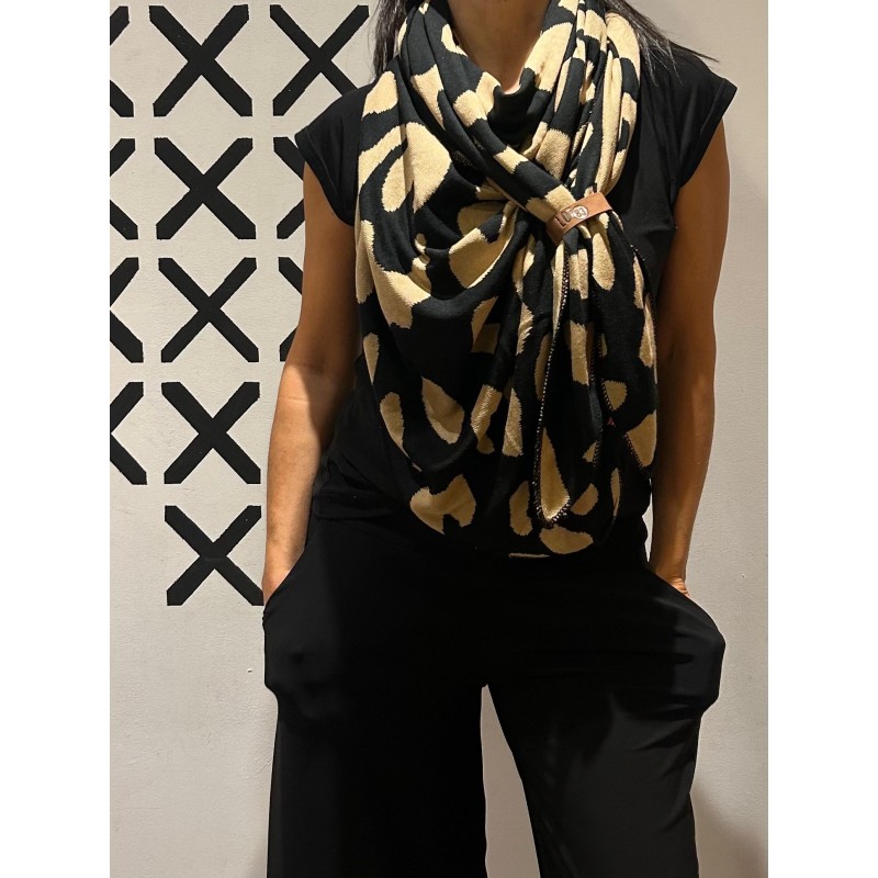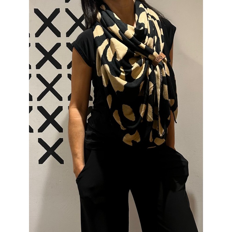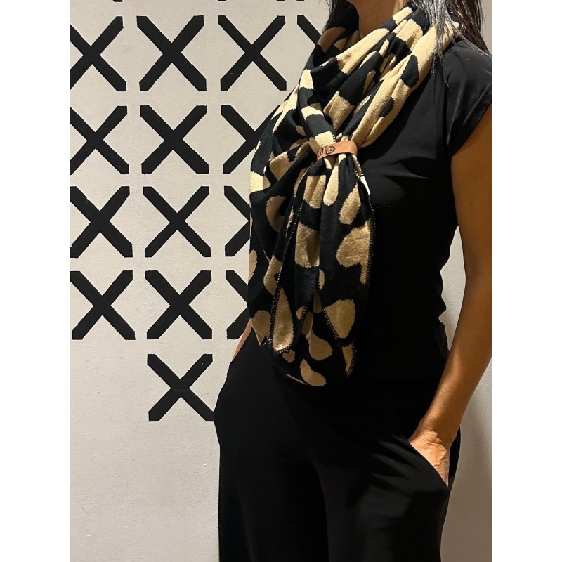 Pañuelo triangular suave, muy original. Estampado de leopardo fondo crudo y negro.