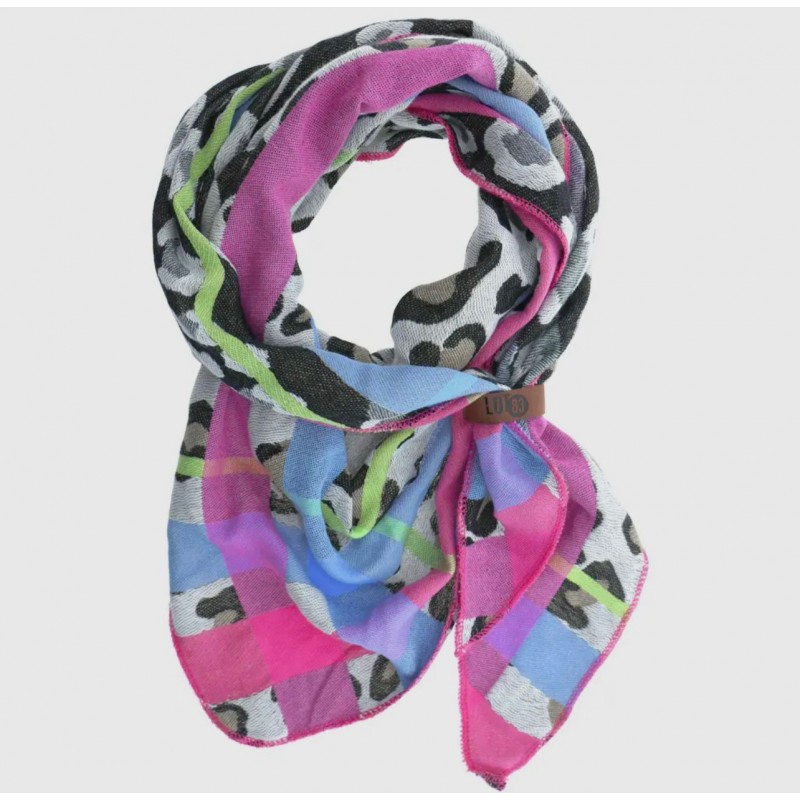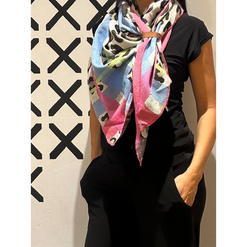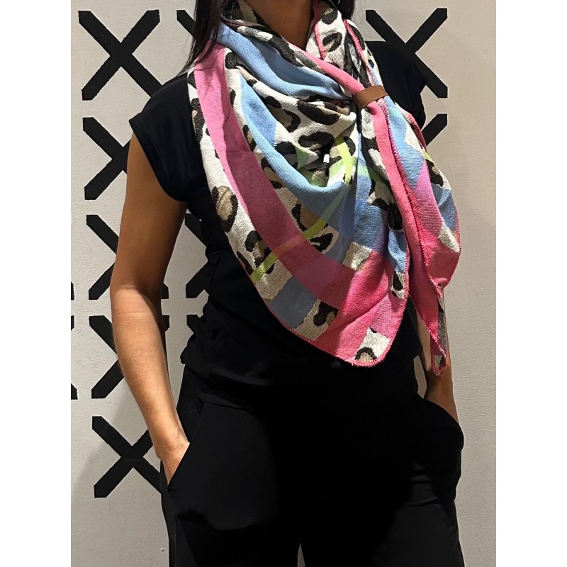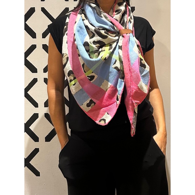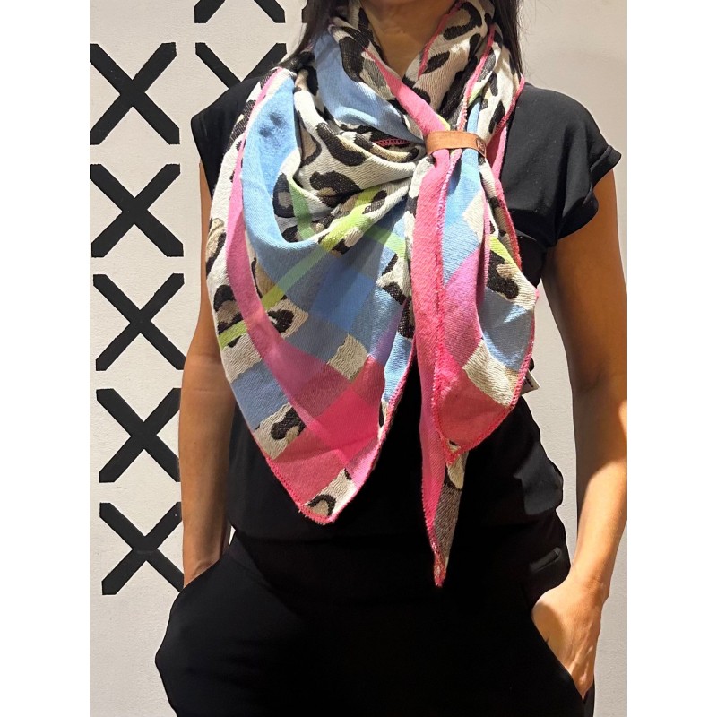 Cuello pañuelo fino estampado pantera en diferentes tonos.