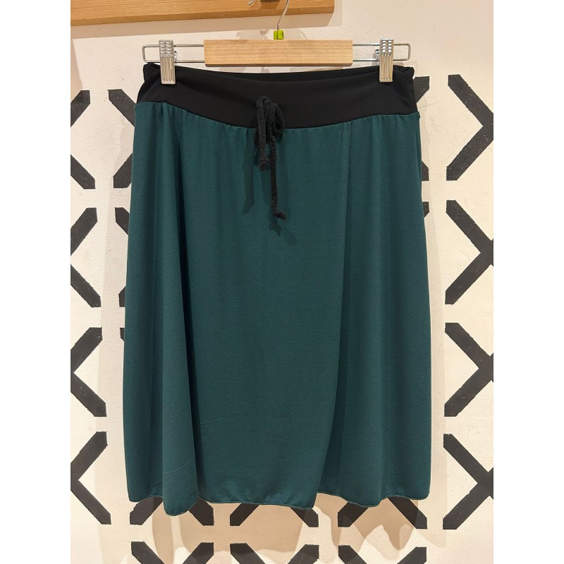 Falda 3/4 (por debajo de rodilla) con goma elástica en la cintura que se puede apretar con cordon.