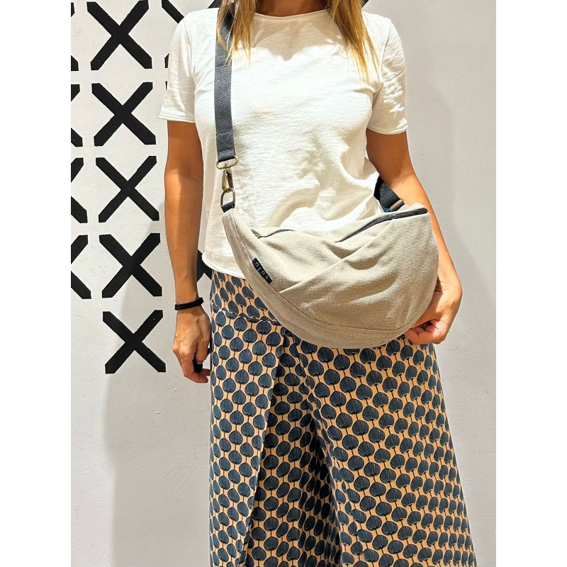 Su forma y la correa con mosquetón, le permiten adaptarse para llevarlo al hombro o de bandolera según te apetezca.