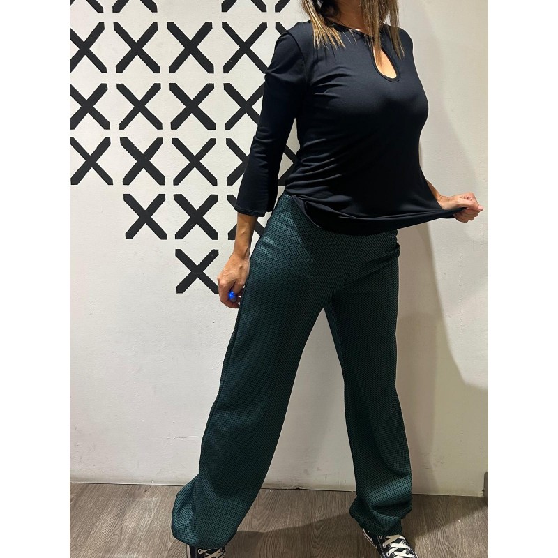 Fabricado artesanalmente con punto roma con elastano verde y estampado en flocado negro.