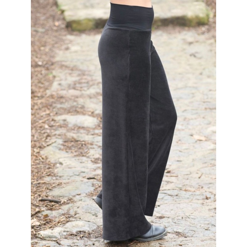 Corte ancho y con cinturilla ancha en negro elástica. Comodísimo.