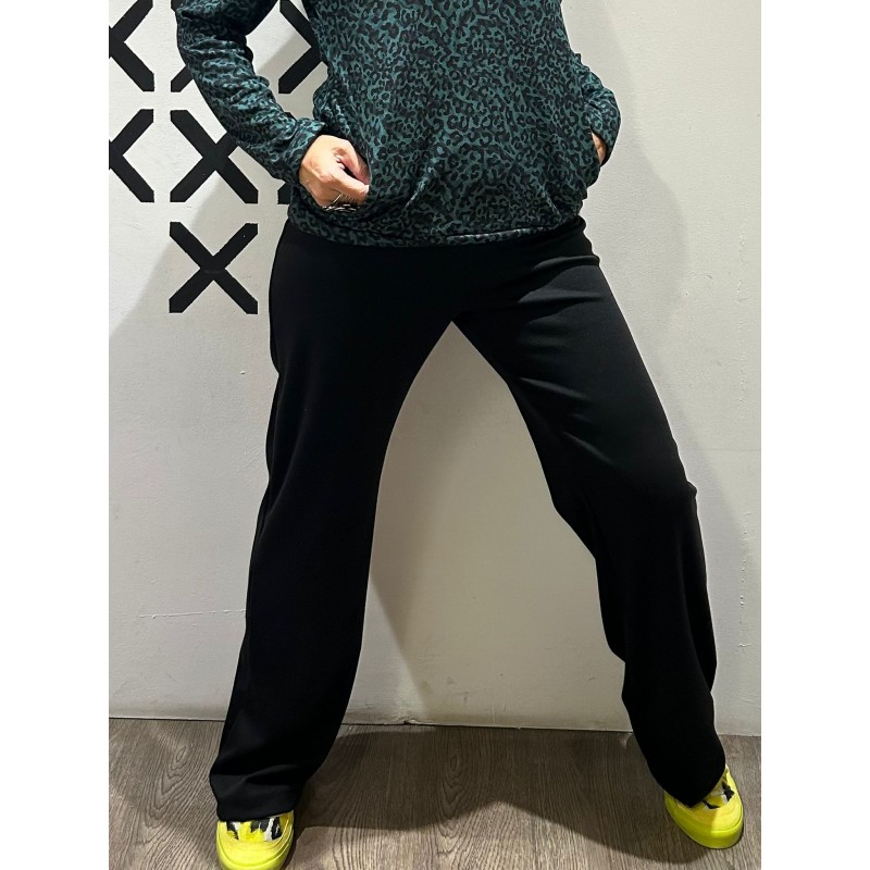 Pantalón artesanal de corte recto con goma plana en la cintura.