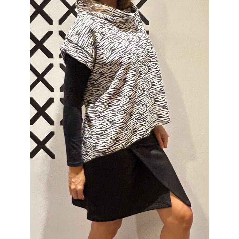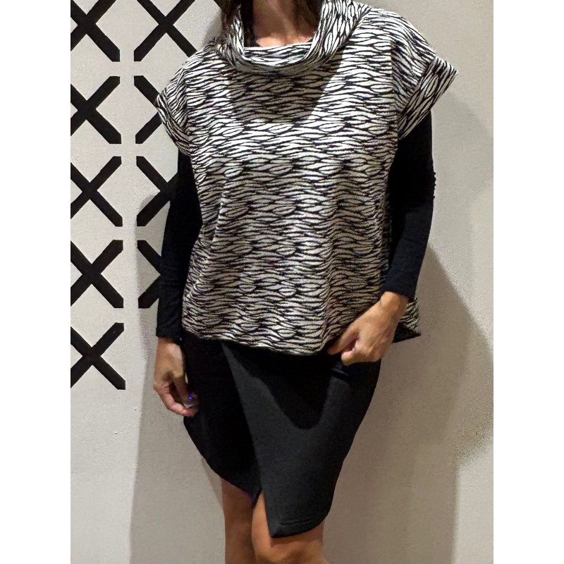 Chaleco con manguita muy favorecedor. Diseño más corto por la parte delantera y ligeramente más largo por detrás.