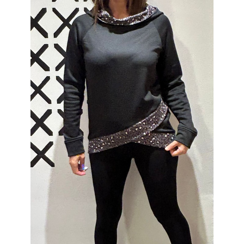 Original y estiloso, este Jersey/Sudadera con capucha és una pieza con identidad.
