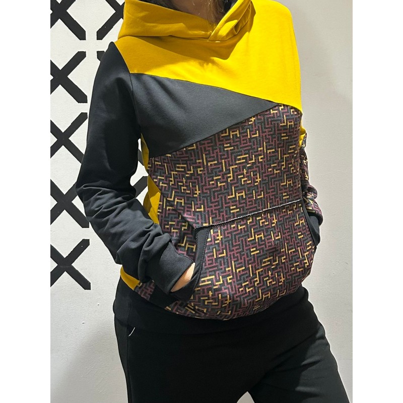 Tejido algodón afelpado en el interior combinado con estampados jaquard.
