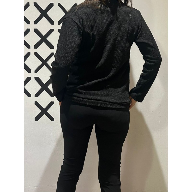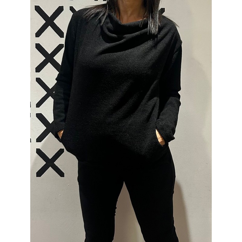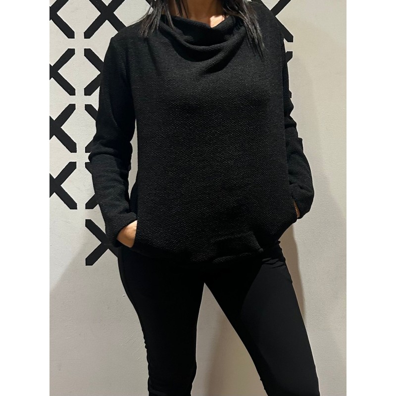 Jersey artesanal con cuello desbocado y bolsillos.