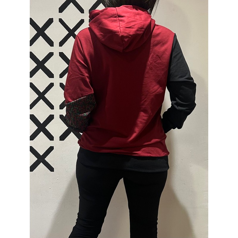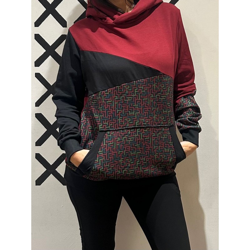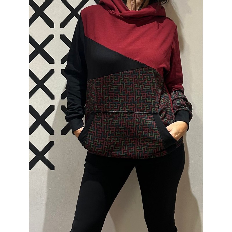 Tejido algodón afelpado en el interior combinado con estampados jaquard.
