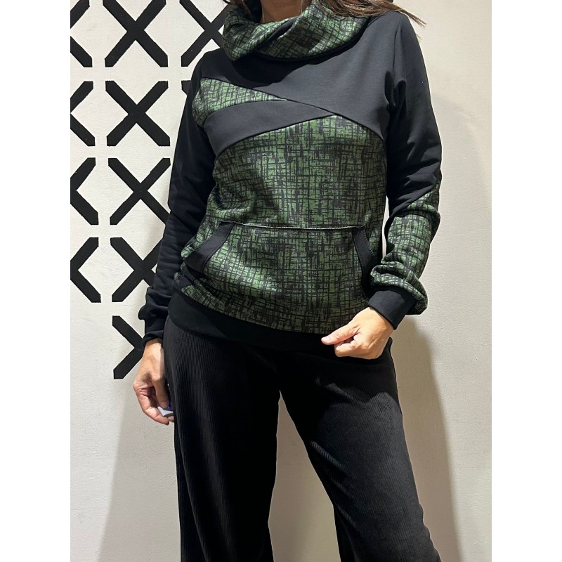 Sudadera artesanal SIN capucha y bolsillos. Cuello vuelto