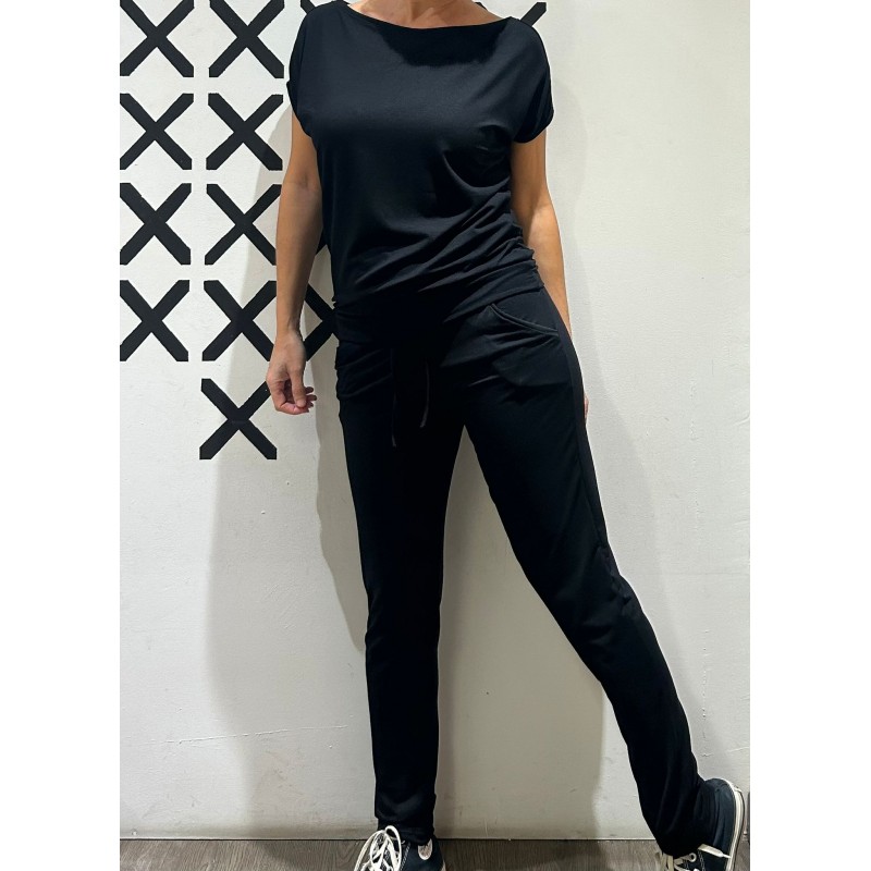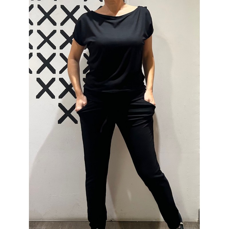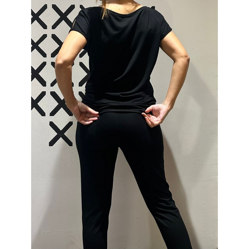 Camiseta en viscosa elástica con cinta elástica en la cintura y aperturas en las manguitas.