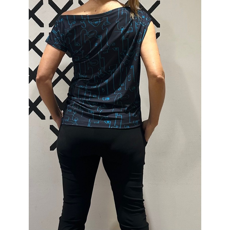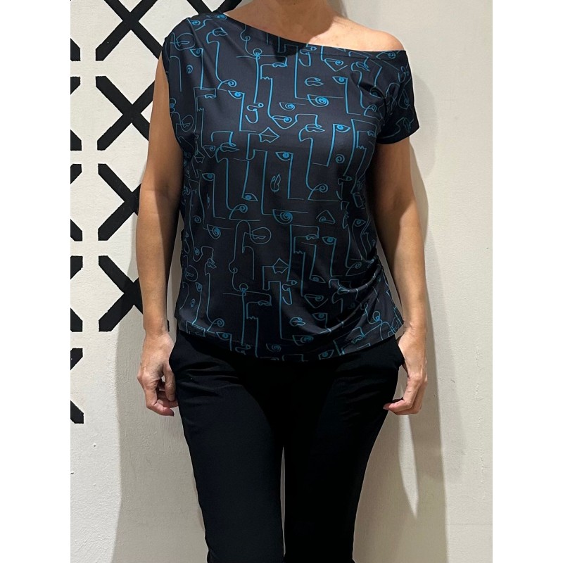 Top Asimétrico con un diseño moderno que deja un hombre ligeramente descubierto.